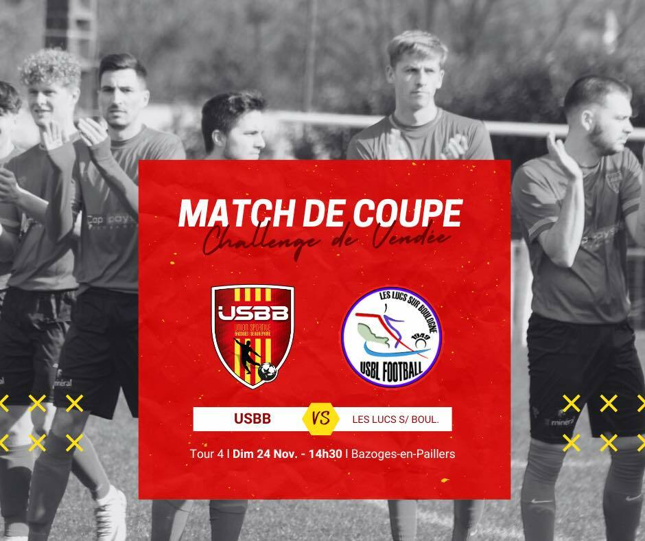 Ce week-end c’est Coupe ! L’équipe fanion est la seule à jouer, elle recevra Les Lucs sur Boulogne à 14h30 à Bazoges. Nous vous attendons nombreux pour venir soutenir les ! Un stand de crêpes et de chocolat chaud sera là pour vous tenir chaud À dimanche